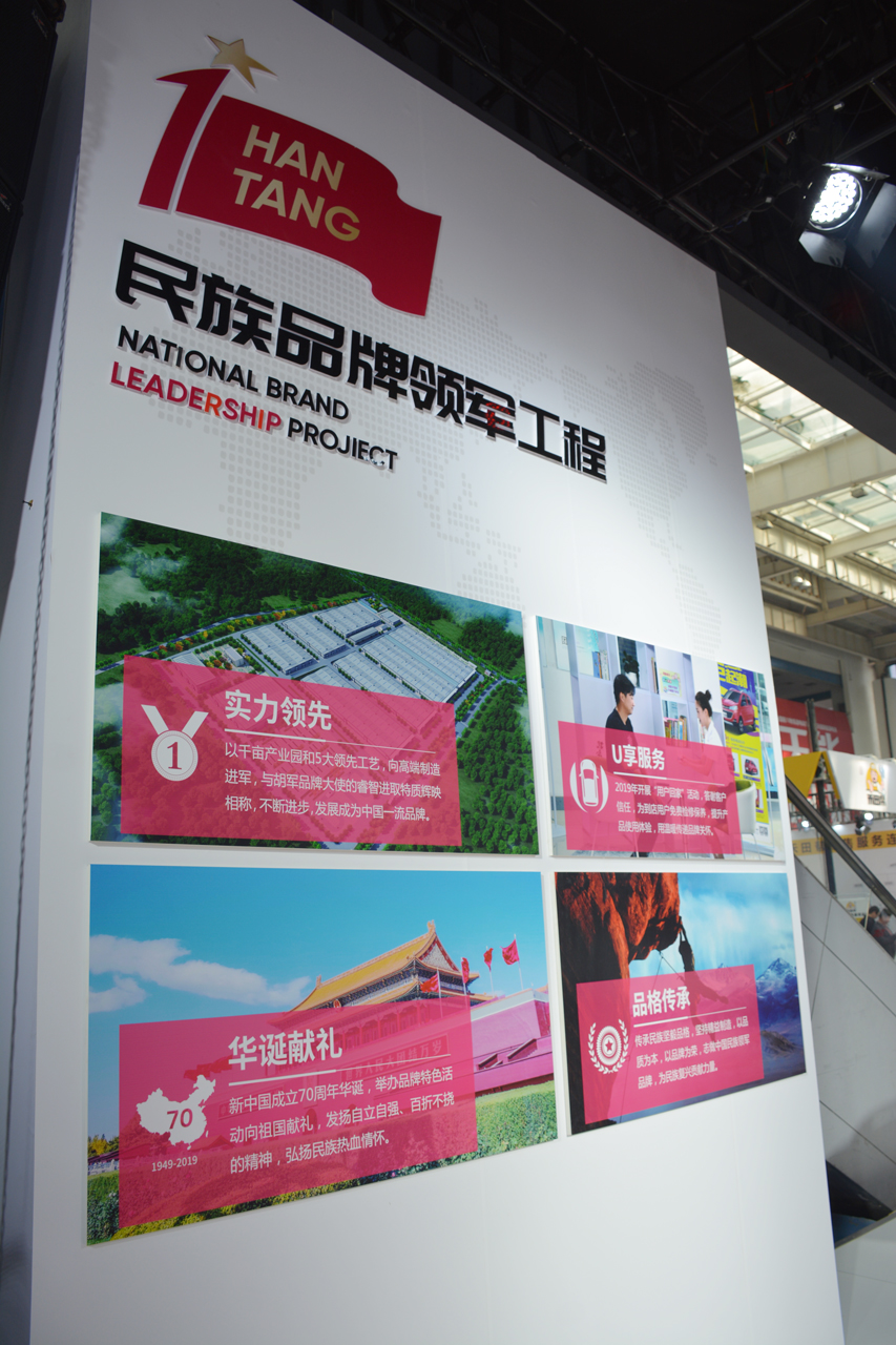 2019年3月7日,漢唐質(zhì)造年度電動(dòng)SUV組合發(fā)布暨民族品牌領(lǐng)軍工程啟動(dòng)儀式在濟(jì)南舉行?;顒?dòng)成為2019第13屆山東國(guó)際新能源汽車電動(dòng)車展覽會(huì)的焦點(diǎn)之一,中國(guó)汽車工業(yè)協(xié)會(huì)副秘書長(zhǎng)葉盛基、中國(guó)汽車工程學(xué)會(huì)副秘書長(zhǎng)張旭明、山東汽車行業(yè)協(xié)會(huì)常務(wù)副會(huì)長(zhǎng)魏學(xué)勤及多位行業(yè)嘉賓參加,全國(guó)核心經(jīng)銷商、供應(yīng)商共同見證了“國(guó)品領(lǐng)軍·漢唐質(zhì)造”戰(zhàn)略發(fā)布的振奮一幕。